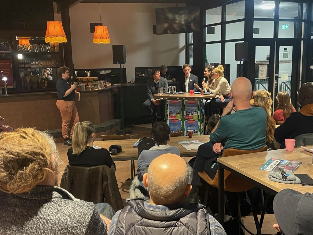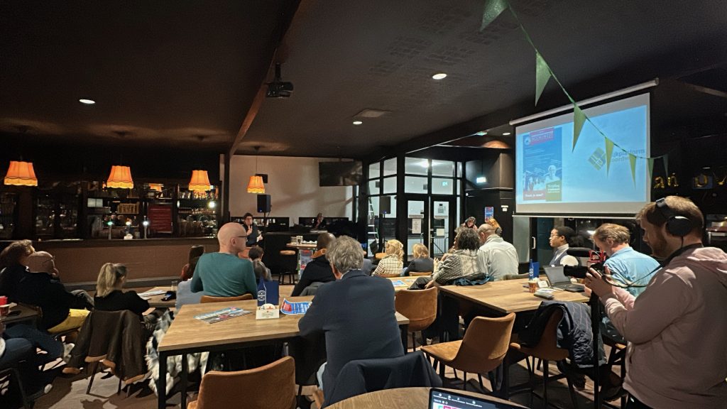 Op vrijdag 6 december werd in de kantine van VV Ondiep Vooruit de campagne voor de gemeenteraadsverkiezingen 2026 afgetrapt met het Verkiezingsgesprek Noordwest waarbij vertegenwoordigers van zeven Utrechtse partijen met elkaar en bewoners in gesprek gingen. De door Wijkplatform Noordwest georganiseerde bijeenkomst was met zo’n zeventig bewoners en betrokkenen goed bezocht.